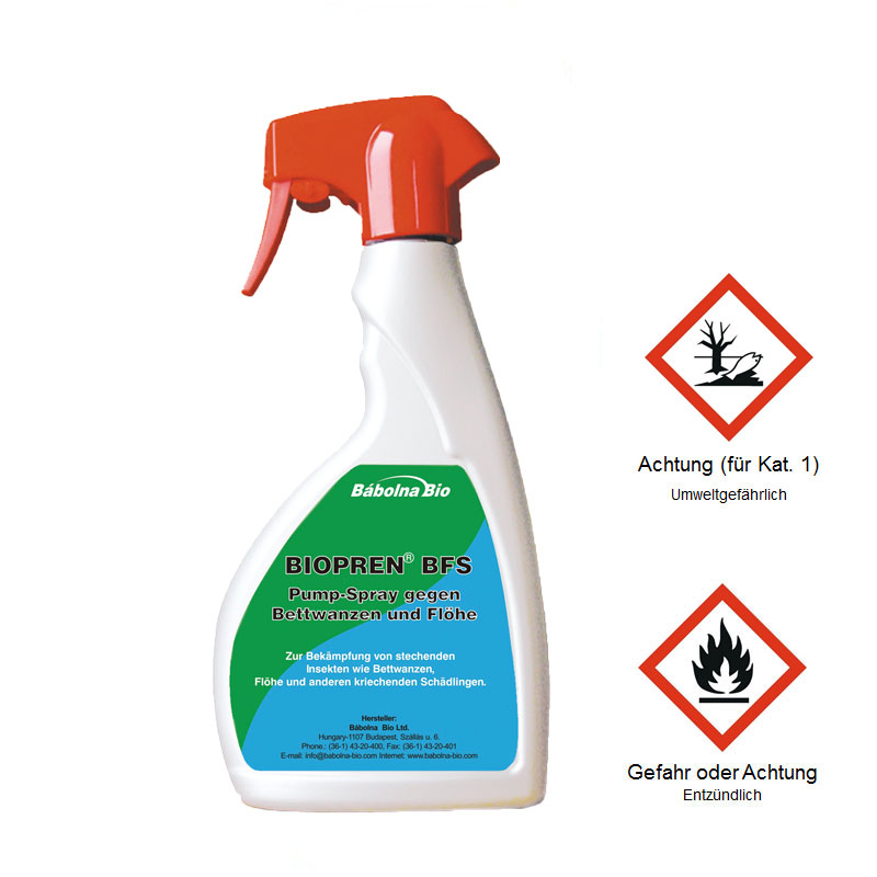 Neuartiges, insektizides Pumpsprühmittel für die Bekämpfung von beißenden Insekten wie Flöhe oder Bettwanzen, aber auch andere kriechende Insekten. Der Wirkstoff S-Methopren stört den Entwicklungszyklus der Insekten. Sehr gut geeignet gegen Insekten mit Resistenz gegen synthetische Pyritroide-Insektizide