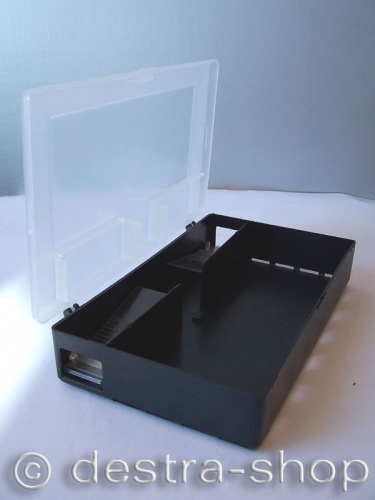 transparentem Deckel, Sichtfenster, extra Sicherungsklappen. Vielseitig