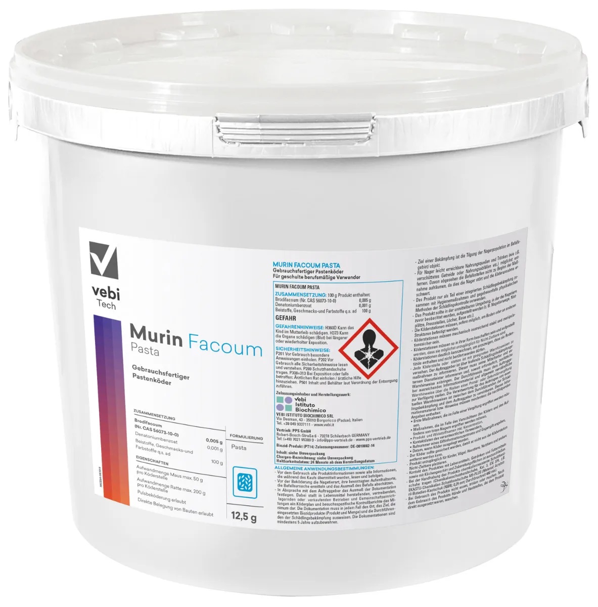 Hersteller: Vebi VEBI ISTITUTO BIOCHIMICO SRL Via Desman, 43 35010 Borgoricco IT regulatory@vebi.it +49(0) 7021 95389 0 Verantwortliche Person: Vebi VEBI ISTITUTO BIOCHIMICO SRL Via Desman, 43 35010 Borgoricco IT regulatory@vebi.it +49(0) 7021 95389 0 Sicherheitshinweise: Biozidprodukte vorsichtig verwenden. Vor Gebrauch stets Etikett und Produktinformationen lesen. Sicherheitsdatenblatt: [Download]
